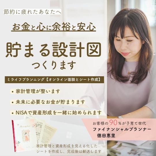ファイナンシャルプランナーの徳田恵里です。